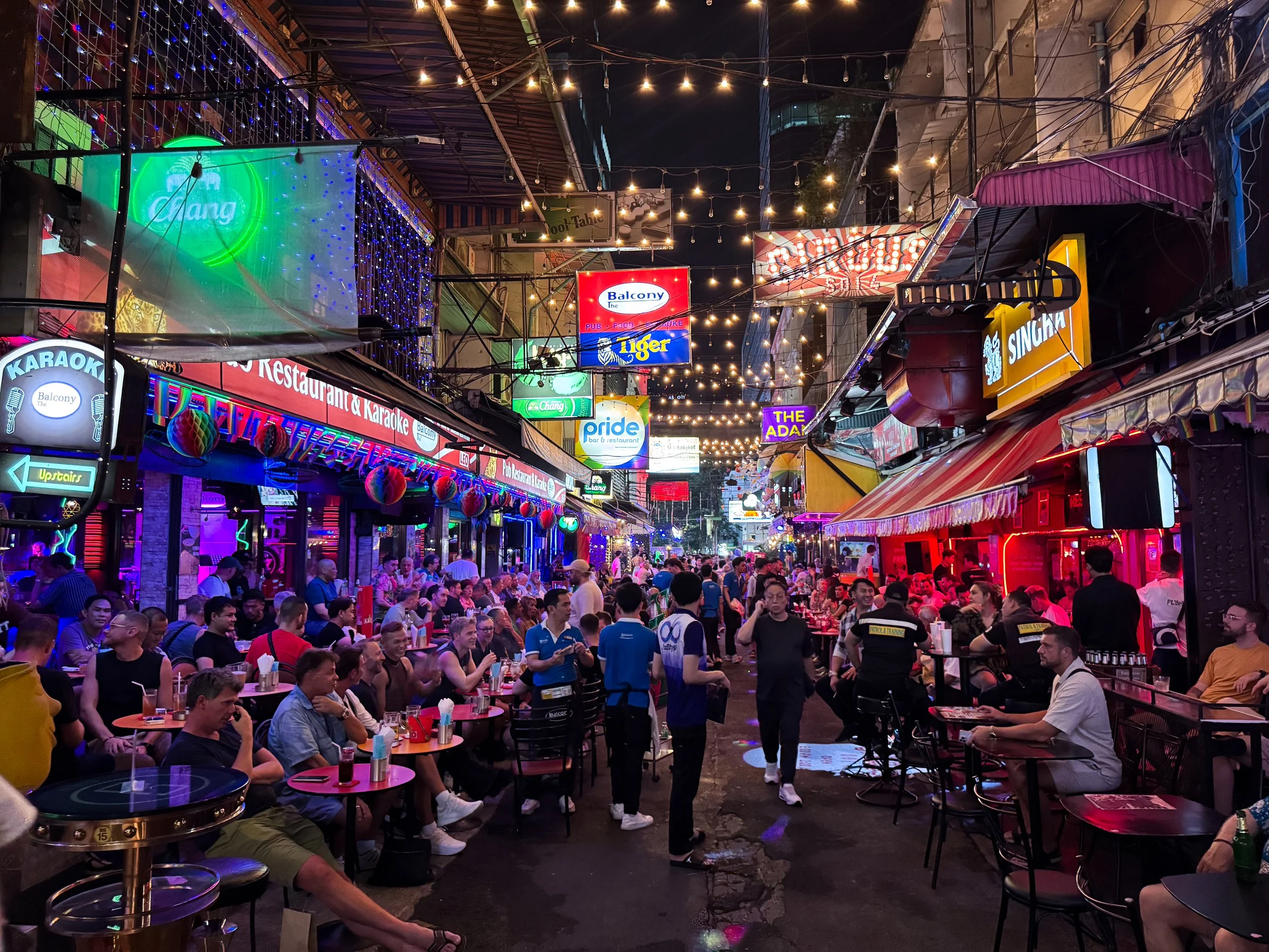 Silom 4 Alley. An alleyway in Silom lined with gay bars serving boozy cocktails, nightly drag shows and lady boy dance performances. The alley gets busy after 9pm and the nightlife continuing into the early morning hours. We sat outside at BAS Living Room sipping on classic and signature cocktails like a Long Island iced tea and passion fruit gin & tonic.