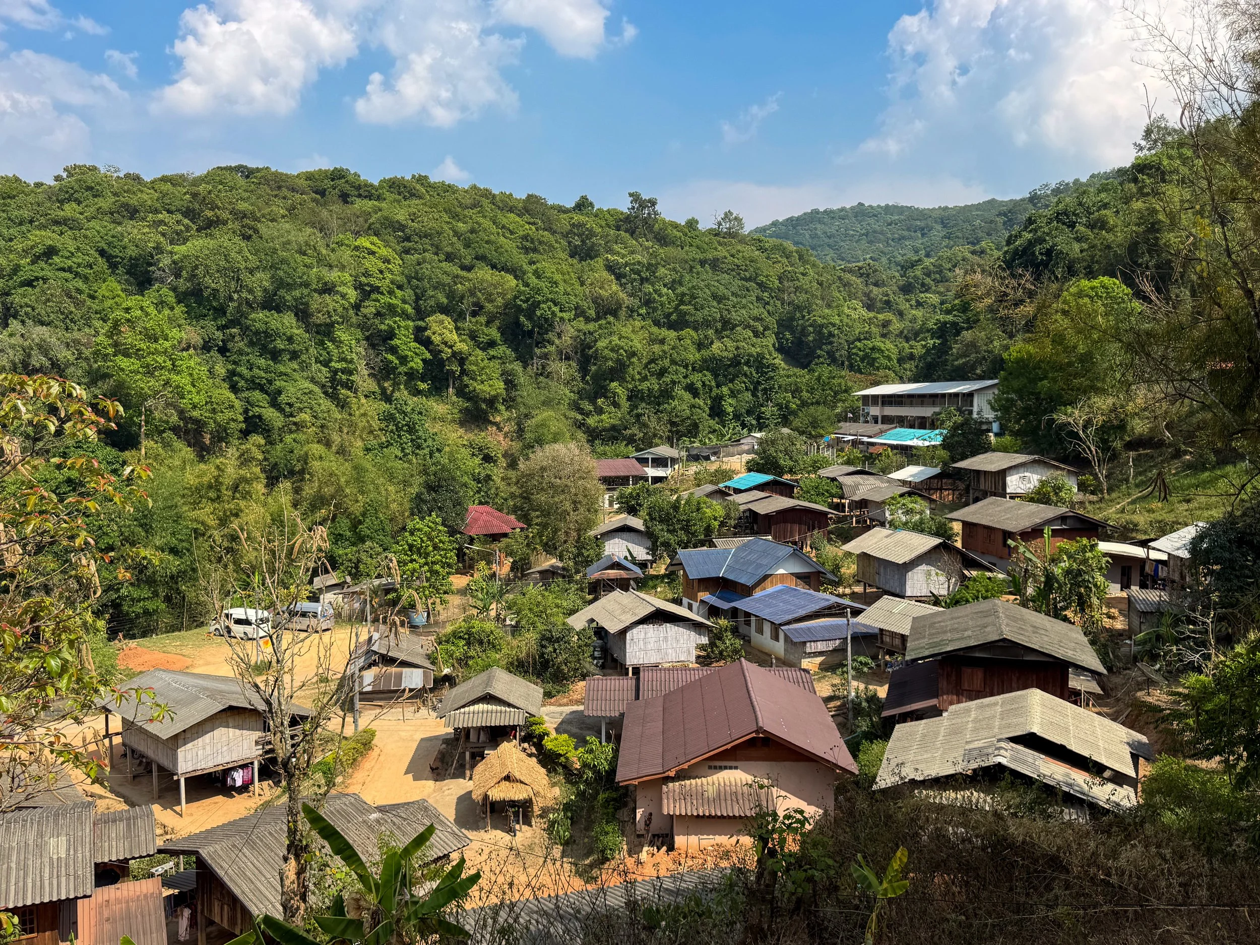 Karen Village. The Karen people are an ethnic group native to the regions of Myanmar and Northern Thailand. We visited one mountainside village home to about 300 people. We toured their community of wooden and bamboo houses, visited a textile workshop selling handwoven scarves made on backstrap looms and a cafe serving locally grown coffees and teas. On our walk through the village, we saw coffee crops and gardens with dragon fruit, banana, avocado and mulberry trees.