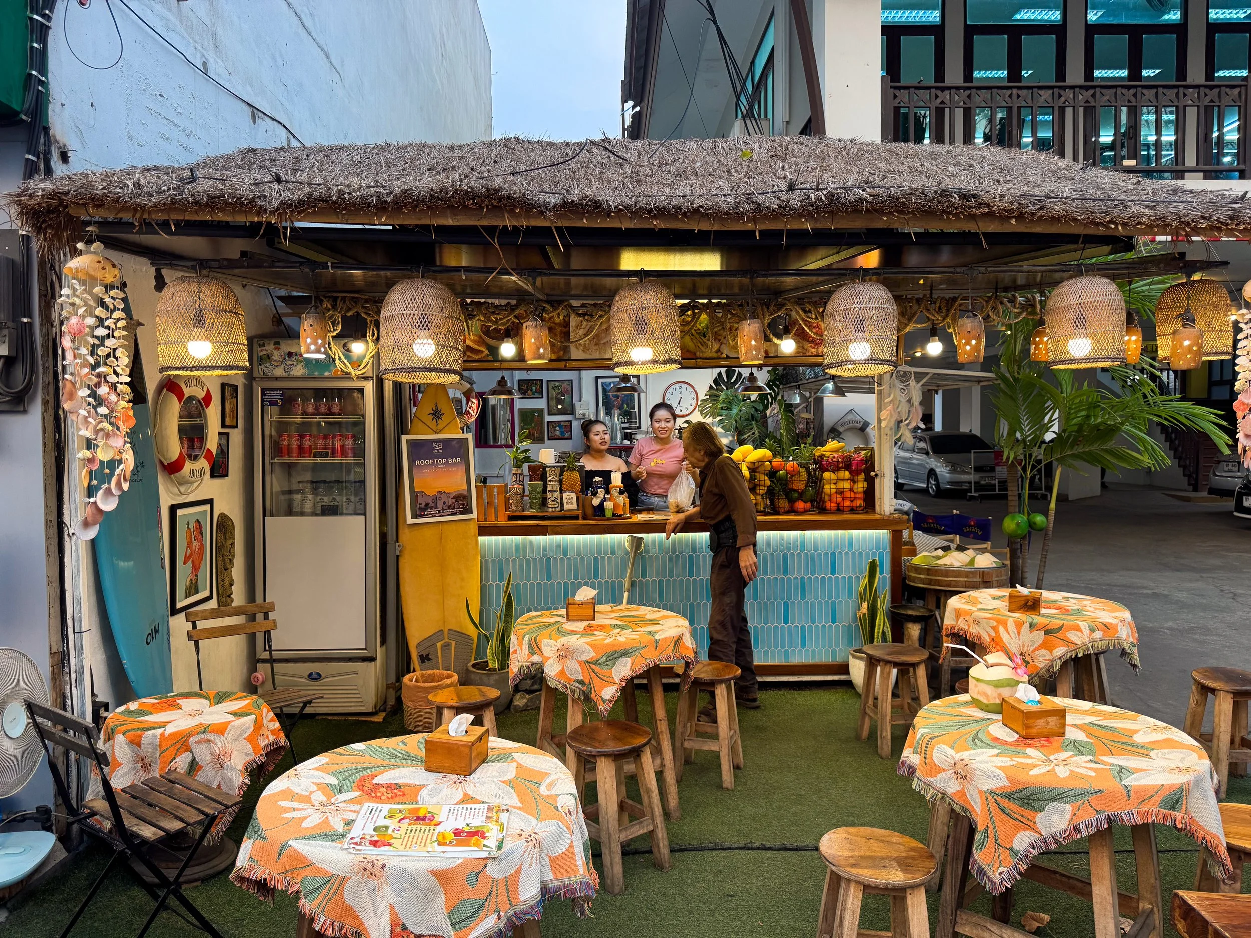 Lost Hut Cocktail Bar. A small tiki style dive bar tucked into a corner of the Old City. Come here for their daily 5-9pm happy hour with 100 Bhat mai tais, mojitos and margaritas.