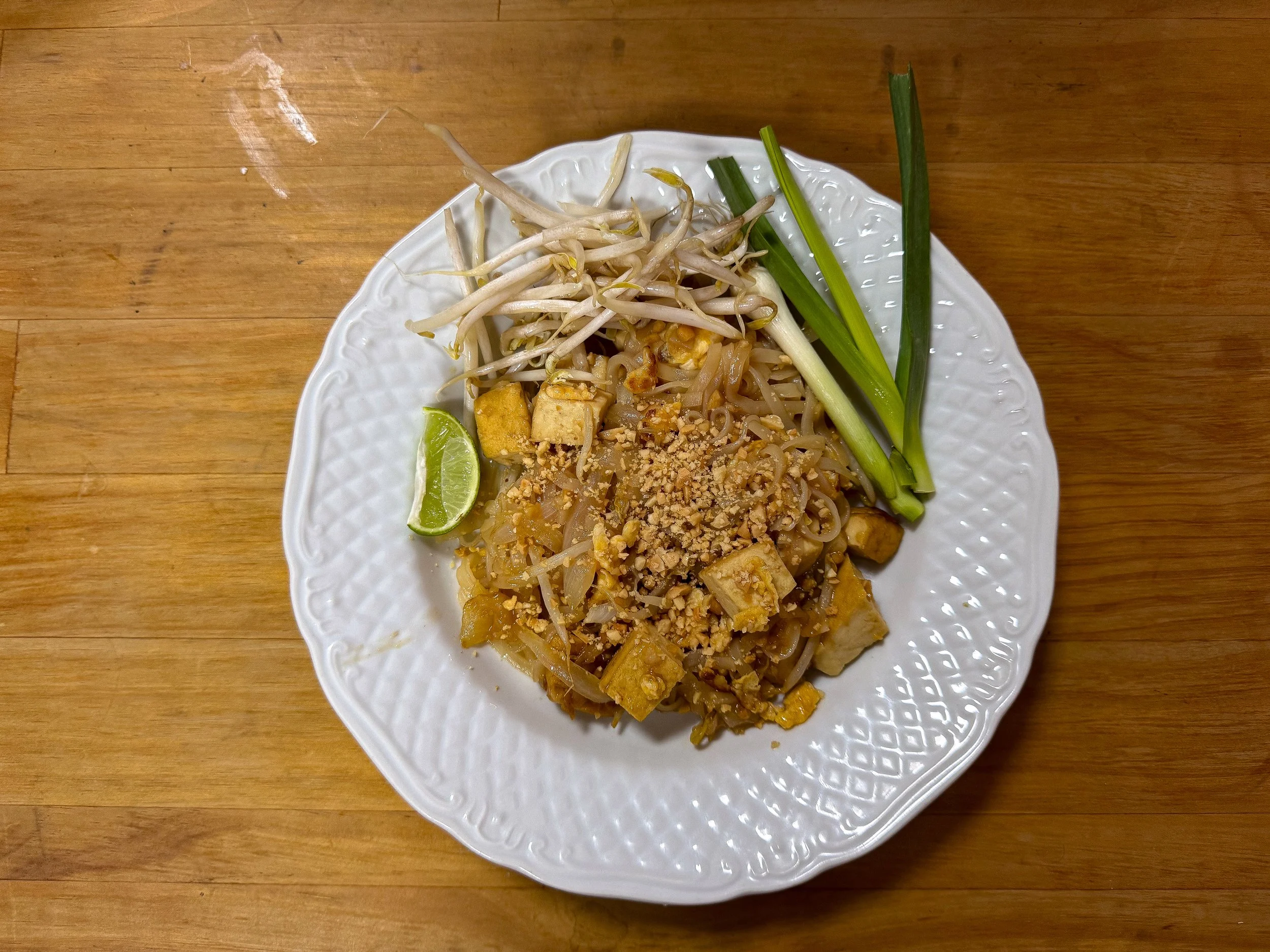 Pad Thai. A world renowned rice noodle dish famed for its tangy and sweet sauce paired with peanuts, scallion, bean sprouts and chili pepper.