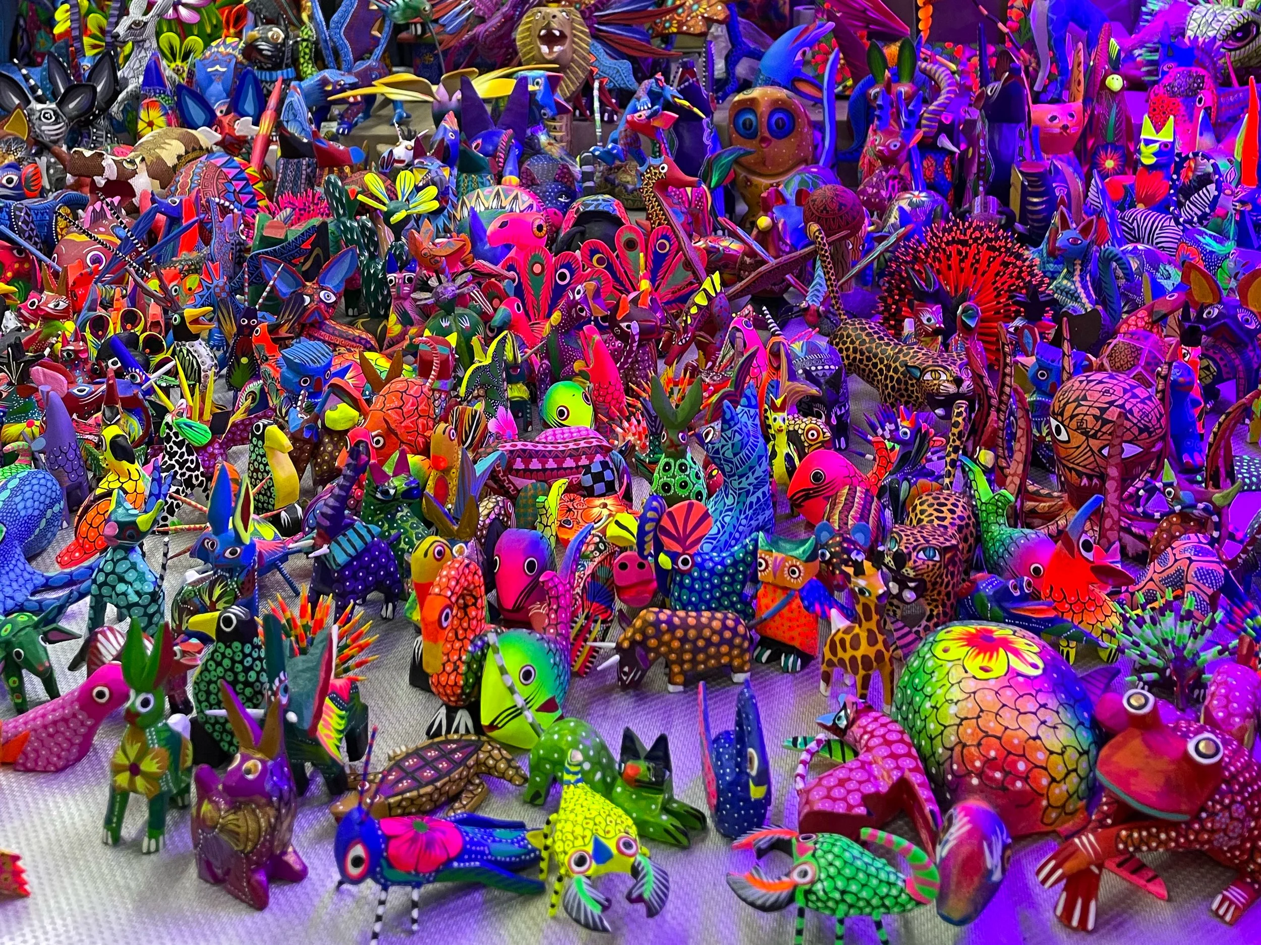 Alebrijes. Ornately designed and colorfully painted representations of animals and mythical creatures that act as spirit guides to the dead. They’re seen all across Mexico, especially around Day of the Dead.