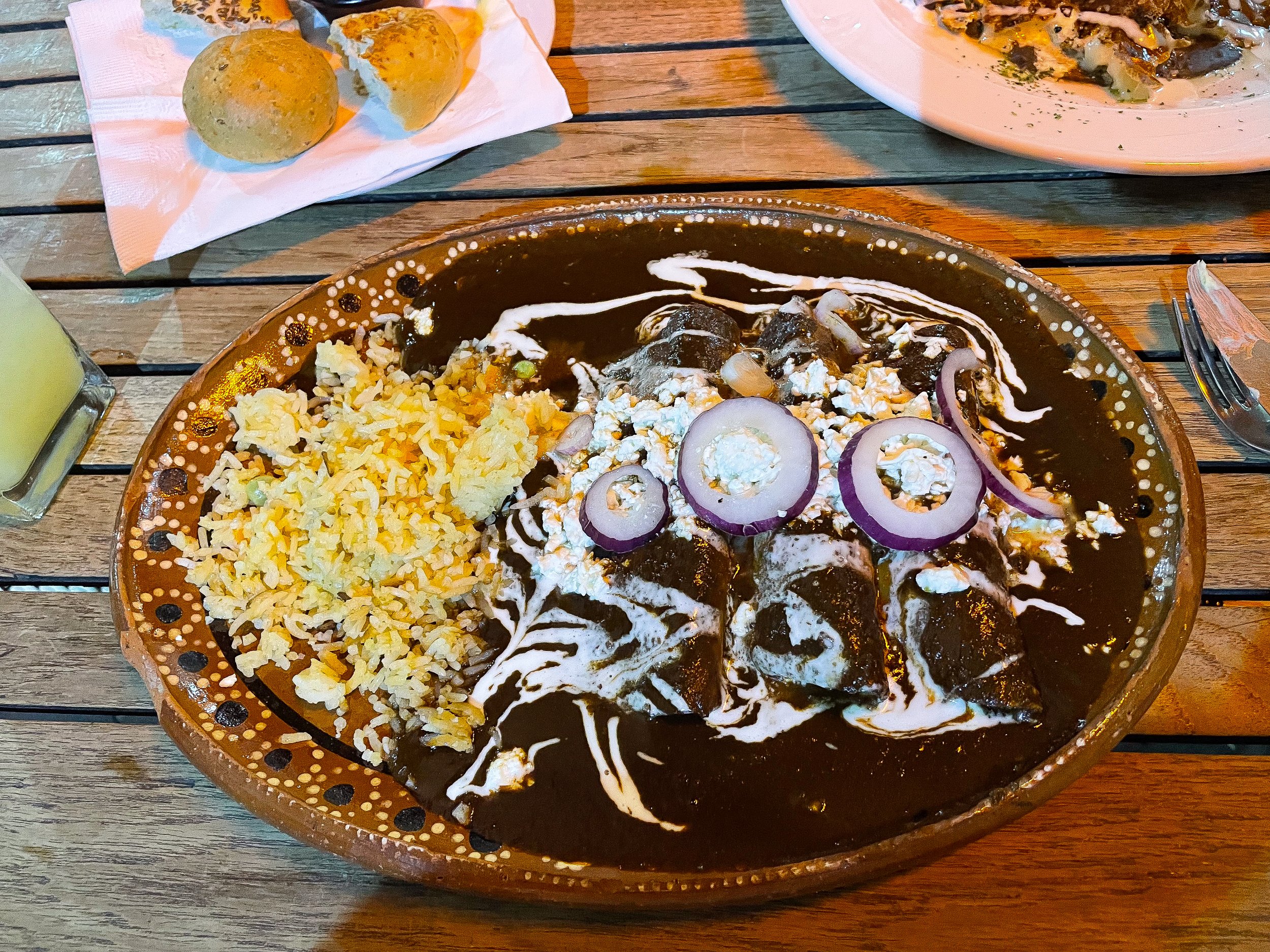 Restaurant Ave Maria. A higher end restaurant serving classic Mexican meals like enchiladas in mole, chile relleno with queso and tres leches served on traditional clay dishes