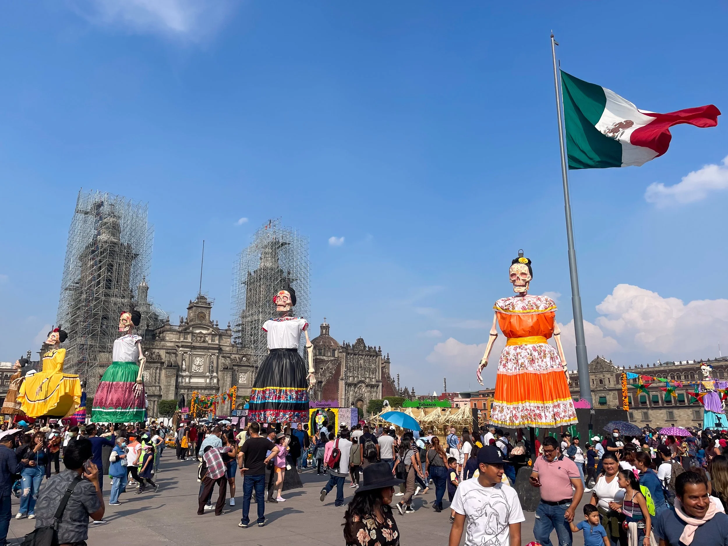 A massive public square in the Centro Historico and hub for Mexico City’s Day of the Dead festivities. The square is decorated in towering catrinas and ofrendas each representing a different state of Mexico. It’s the sight of many street food vendors and performances including the parade day’s “Grand Closing Ceremony.”