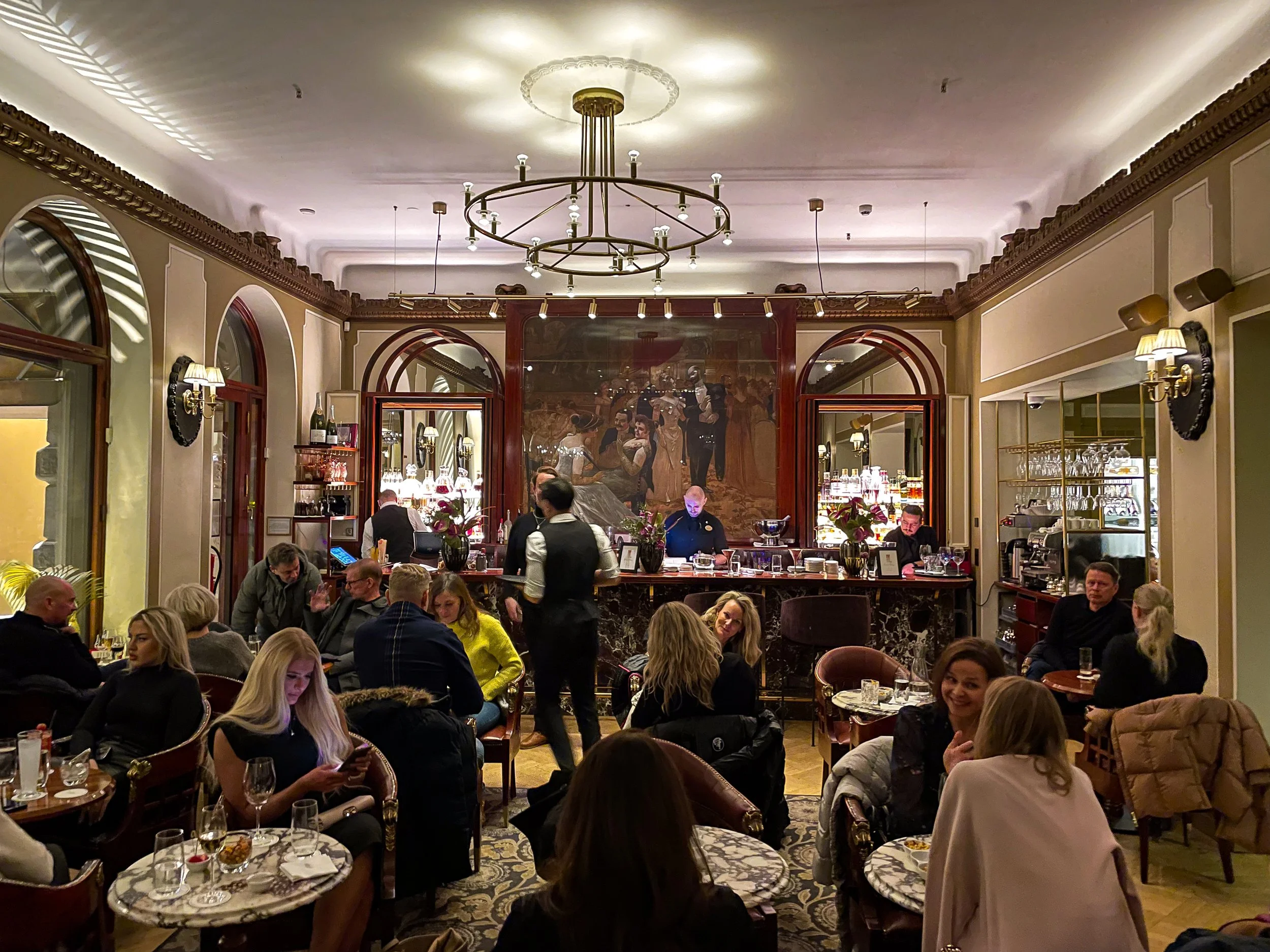 Hotel Kamp Bar. A luxury hotel lobby bar in a warmly lit and historic setting dating back to 1887. Come here for classic cocktails.