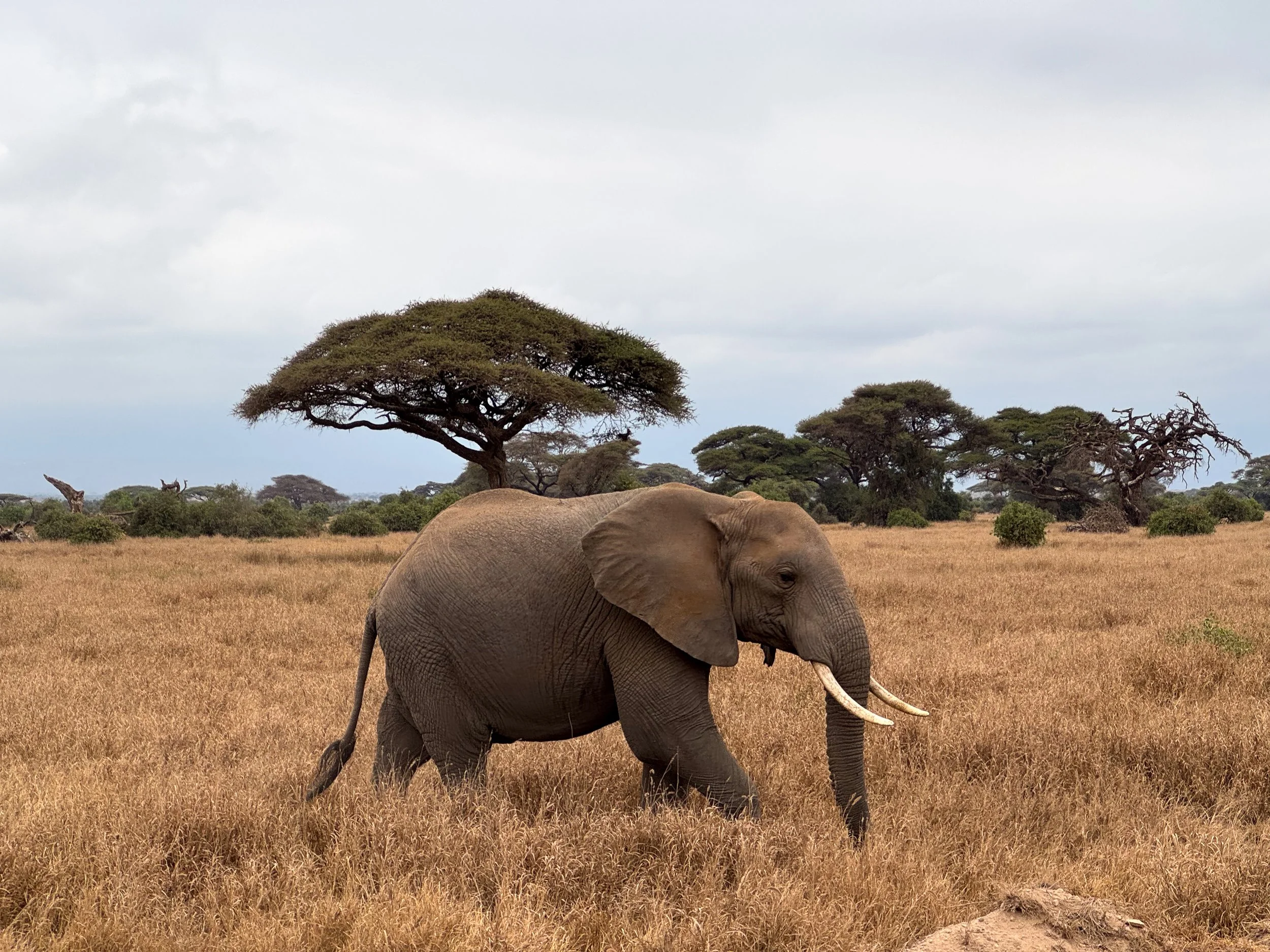 Amboseli National Park is famed for its large population of African elephants, wild game and dramatic landscapes. Its wetlands create a lush oasis and shallow lake visited by elephants and migratory birds. Wild game graze in vast lowlands covered in bush and Acacia trees. Dust devils spiral into the sky across the dry savanna. Clouds completely obscured views of Mt Kilimanjaro.