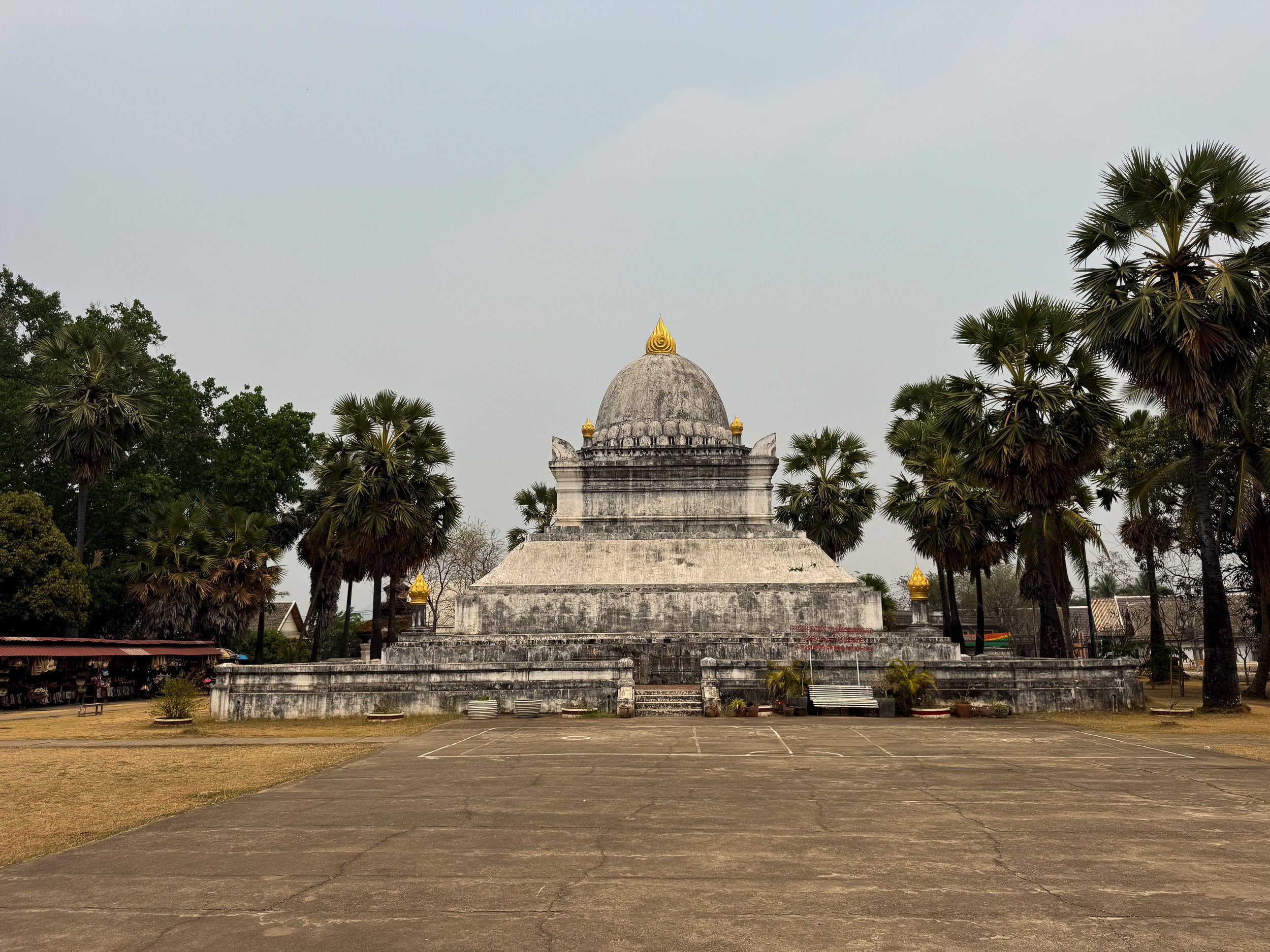 Phousi Hill. A scared mountain in the middle of the city with a golden stupa at its summit. Dragon stairs and walkways lead across its slopes past Buddhist statues, shrines and a monastery. On a clear day, the summit offers panoramic views of the city, its pitched clay tiled roofs, leafy palm trees, the Mekong River and distant mountains. It’s a popular place to watch the sunset.