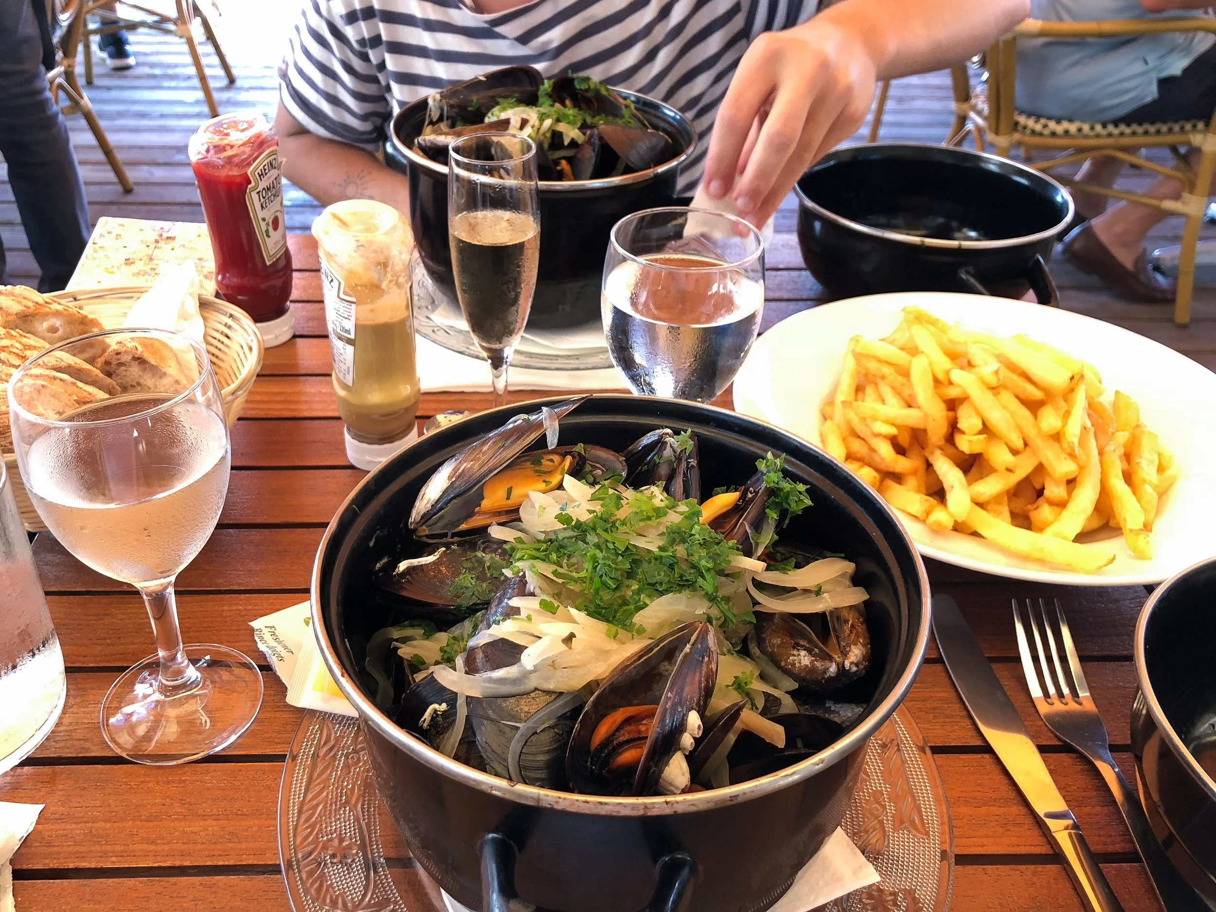 Au Doyen. A seafood restaurant where we ate our first meal in France, moules marinières with frites and rosé.