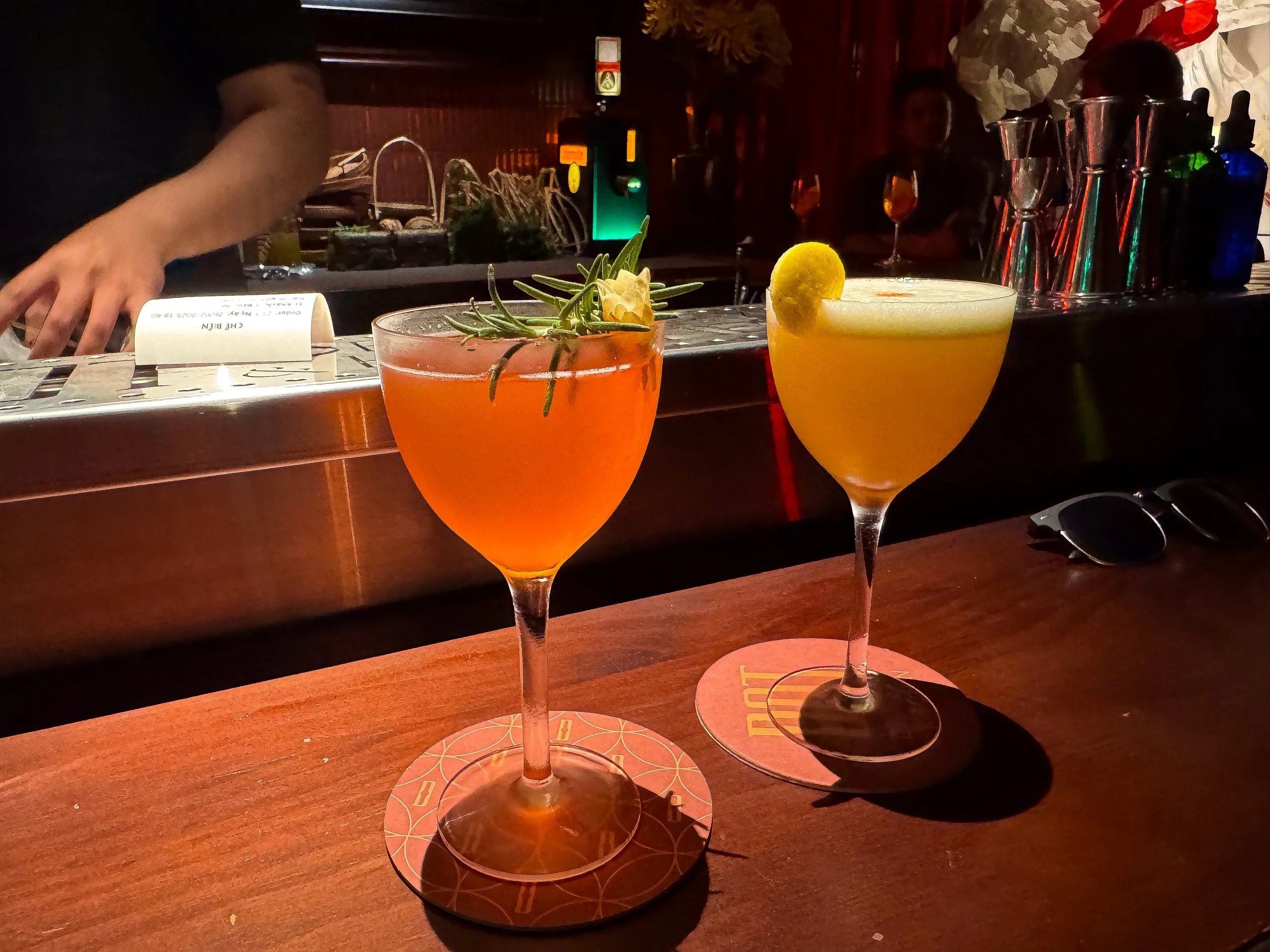 Dot Drinkery & Kitchen. A speakeasy style cocktail bar on the third floor of an unassuming building with a dimly lit interior and Veitnamese decor. The mixologists craft flavorful and aromatic cocktails with local ingredients like kumquat juice, pandan leaves, lemongrass and shrimp salt. Try the Big City Life and The Guava Dawn.
