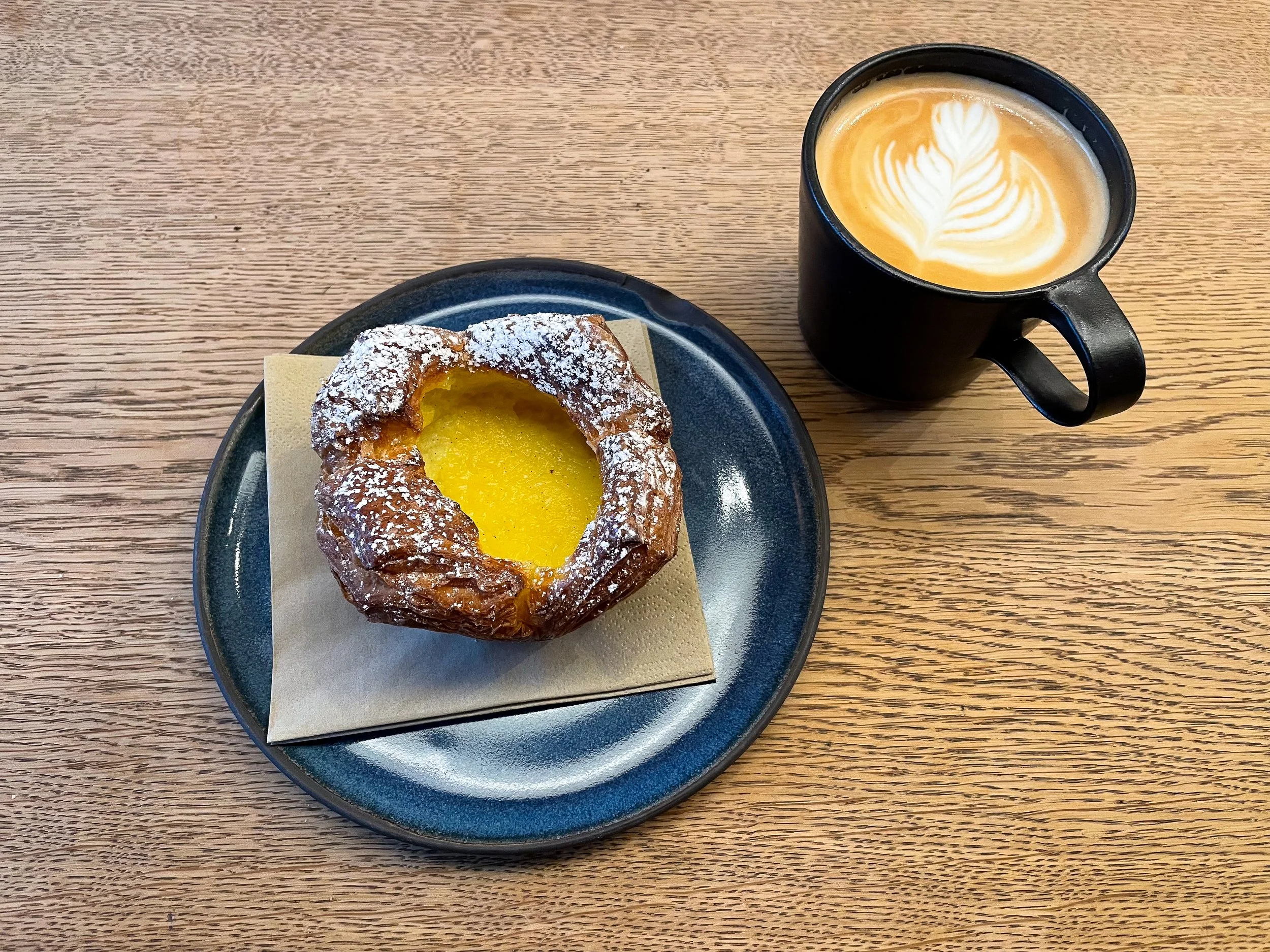 Lille Petra. A cafe hidden within a courtyard of a building servings Danish breakfast buns.