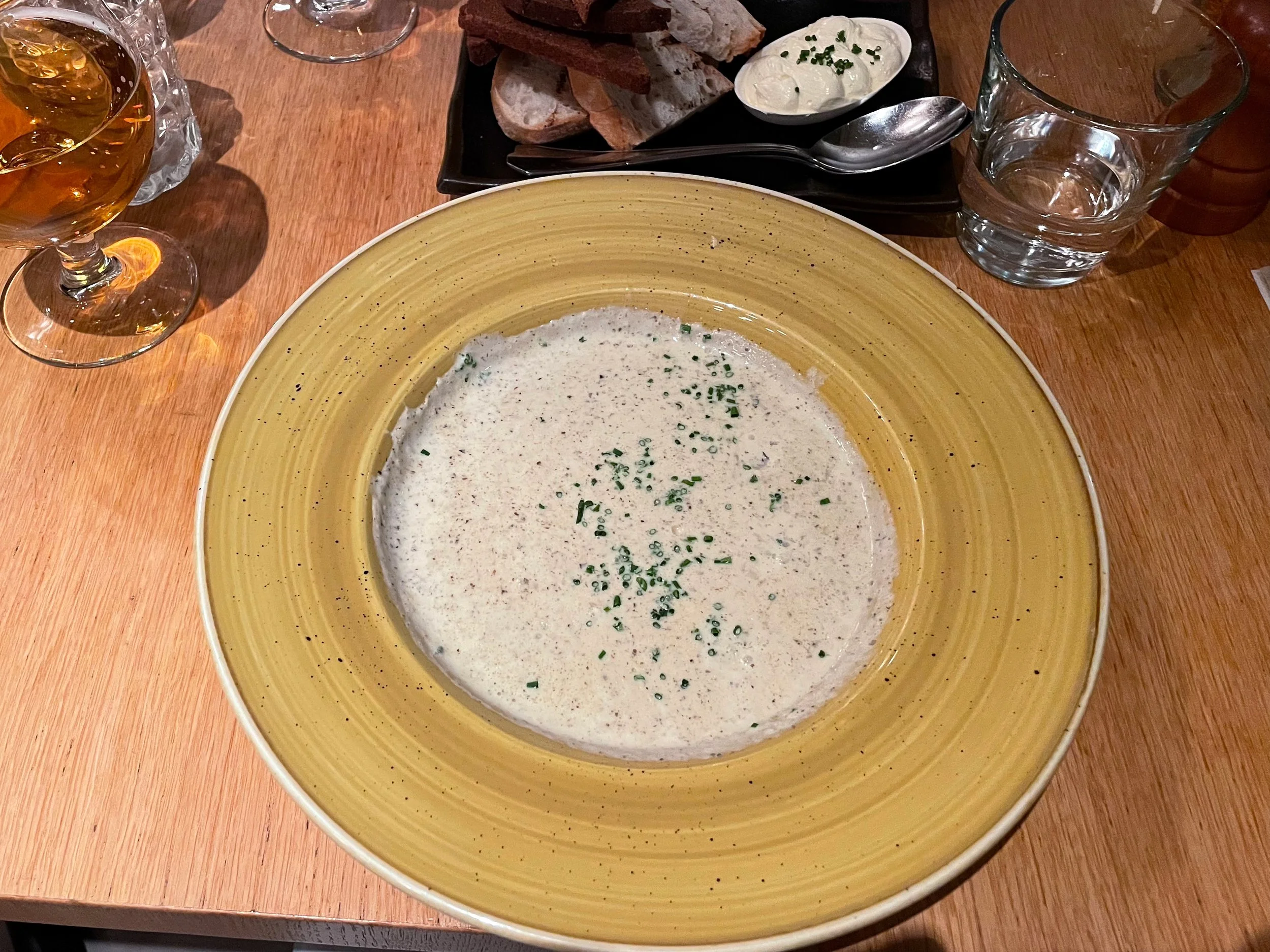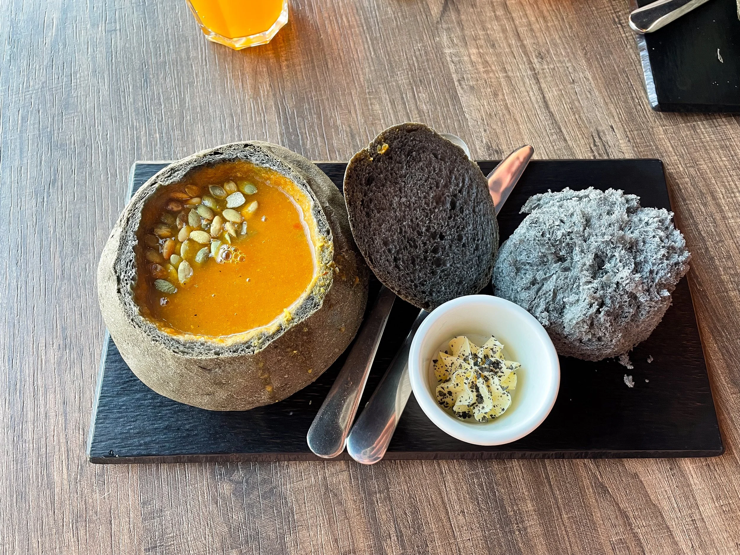 Stracta Bistro. A nordic restaurant serving Icelandic cuisine. Having spent all day outside, we warmed up with a bowl of Fiskisúpa, fish soup, and side of Rugbrauð, Icelandic rye bread.