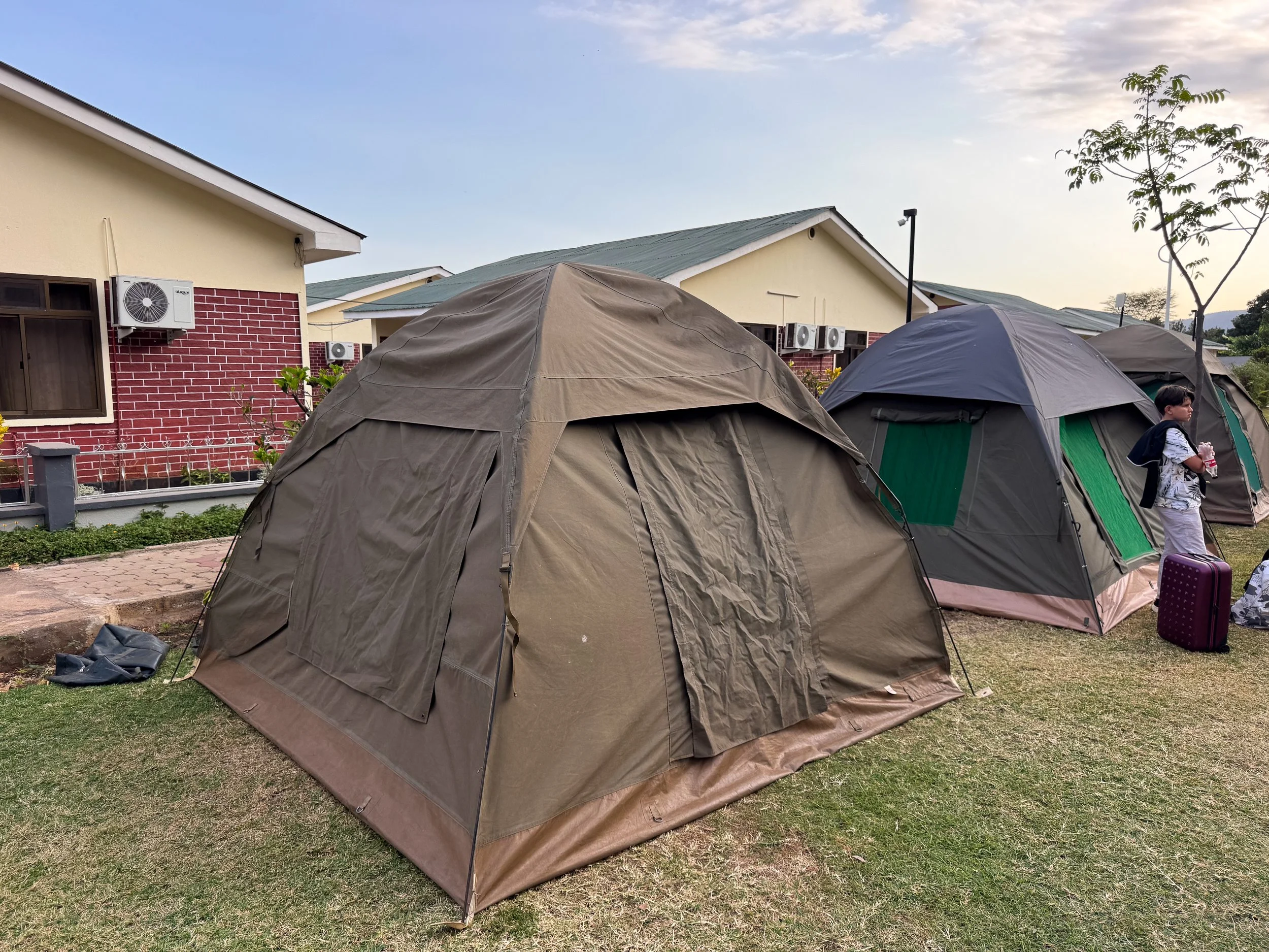 Twiga Campsite & Lodge. A budget hotel with a small campground, communal restrooms, buffet restaurant and outdoor pool. Three rows of Safari style tents line the lawn in front of the hotel. Inside are Massai woven bed cushions and standard sleeping bags. We camped here overnight after exploring Tarangire National Park.