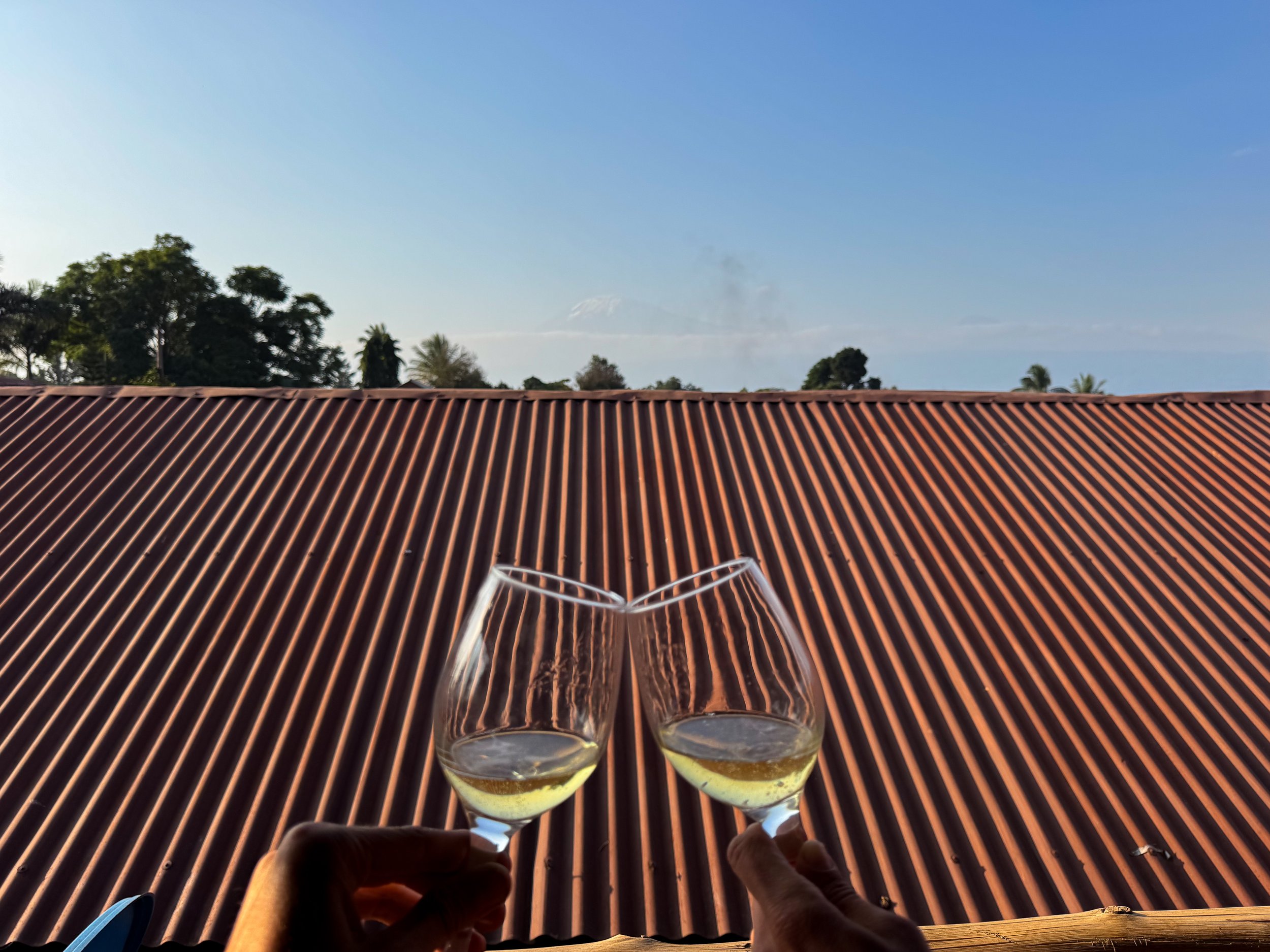 Certificates & Celebration. Park rangers verified our successful hike to the summit and awarded us certificates recognizing the achievement. Our crew brought us back to our hotel in Moshi and presented them to us while singing the Kilimanjaro song, Jambo Bwana. We spent the afternoon relaxing and celebrating with a bottle of South African bubbly while overlooking the summit of Mt. Kilimanjaro.