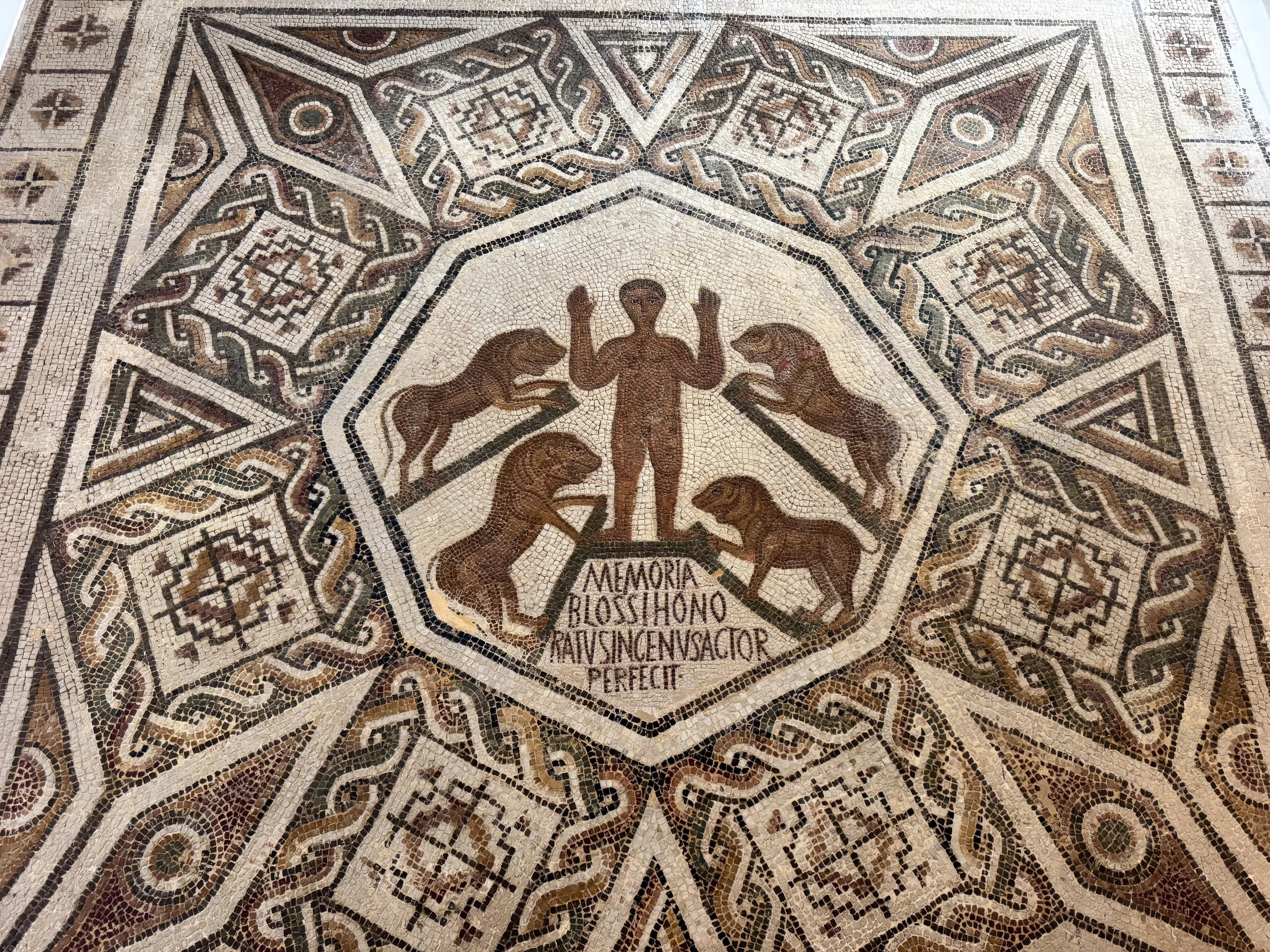 Marine Mosaics Room. A large room with sprawling mosaics of the sea gods, sea creatures and fishing voyages.