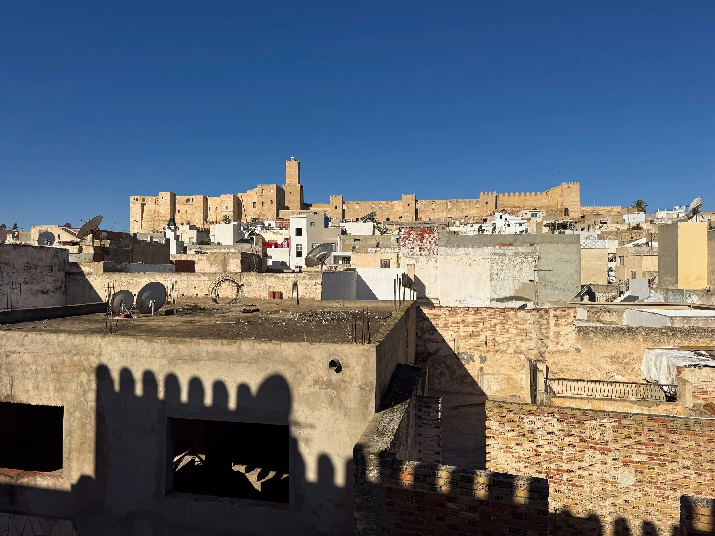 Medina Airbnb. We stayed on the top floor of an apartment in the historic Medina of Sousse. It included a bedroom, large living room and well equipped kitchen. One of the highlights was the private rooftop terrace with views of the Medina, new city and sea. It’s located above a bakery near the south gate, Bab El-Kebli.