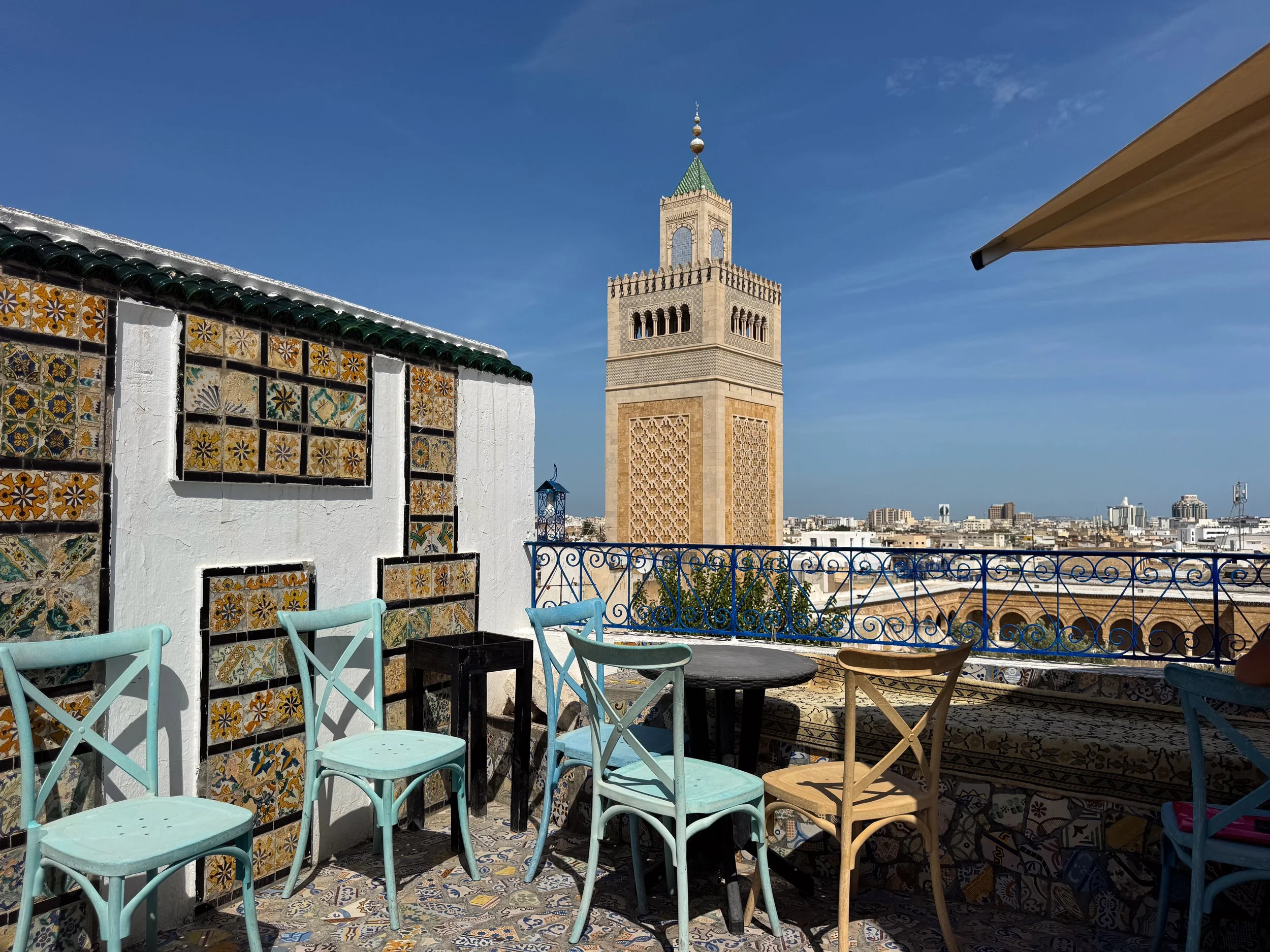 Zitouna Mosque. A historic mosque and Islamic university in the center of the Medina dating back to the 7th century. It features a grand minaret, column lined courtyard and stone masonry repurposed from the ruins of Carthage. It’s not accessible to non Muslims but can be viewed from nearby rooftops like Cafe Panorama.