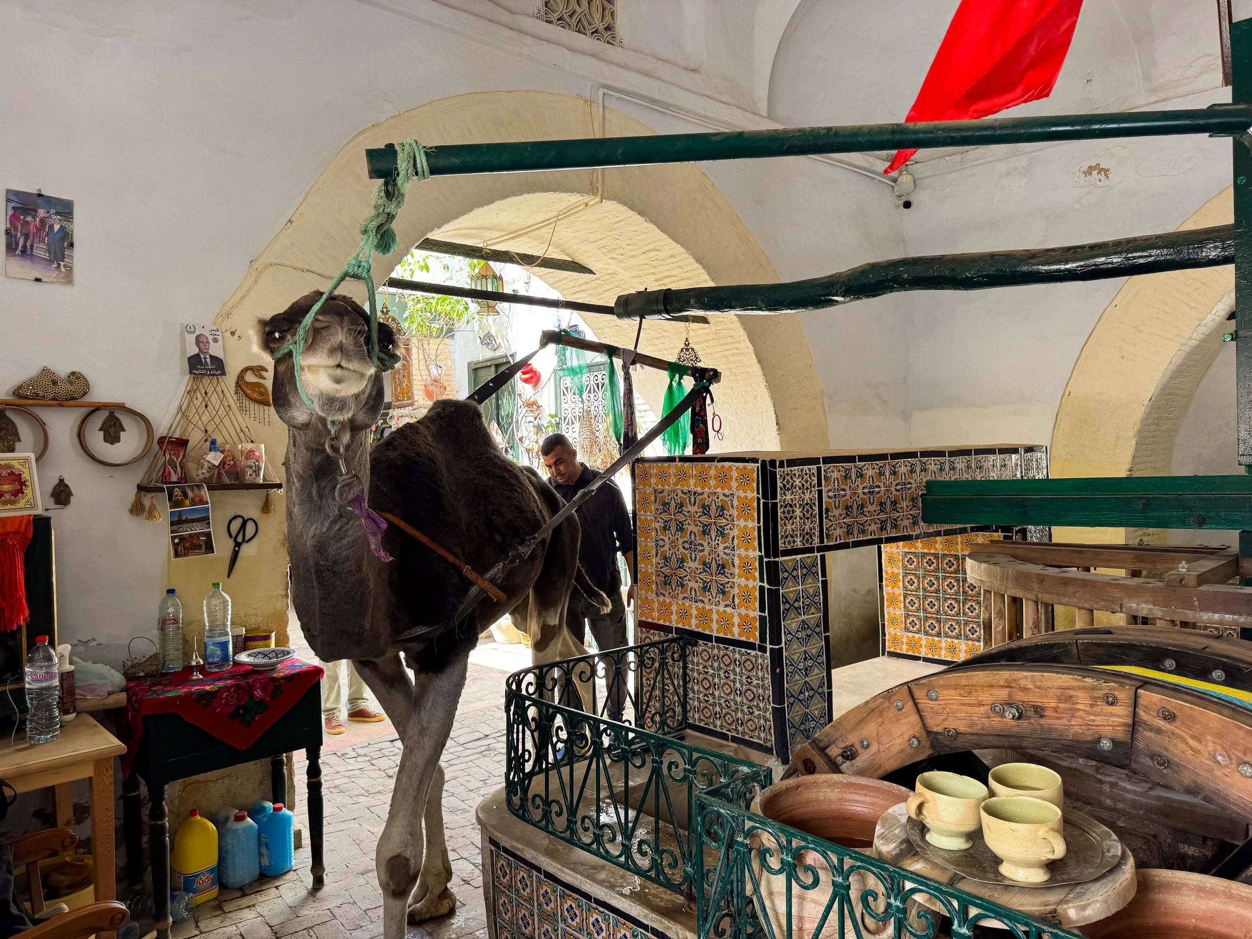 Bir Barrouta. A very unique cafe on the second floor of a stone building in the Medina. It’s built around a historic well operated by a camel drawn wheel that lifts buckets of water to the surface. The cafe makes coffees and teas using water from the well. Try the Turkish coffee.