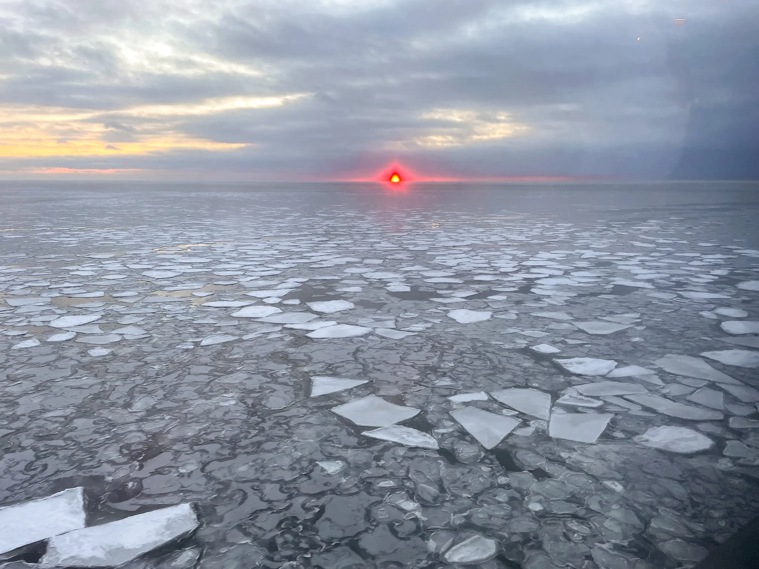 By Ferry from Helsinki. We arrived in Tallinn by ferry from Helsinki on the Tallink Line. The ferry was similar to a cruise ship with large seating areas, sleeping cabins, restaurants, bars, shops, a theater and casino games. The ship voyaged 3 hours across the icy and slushy waters of the Gulf of Finland.