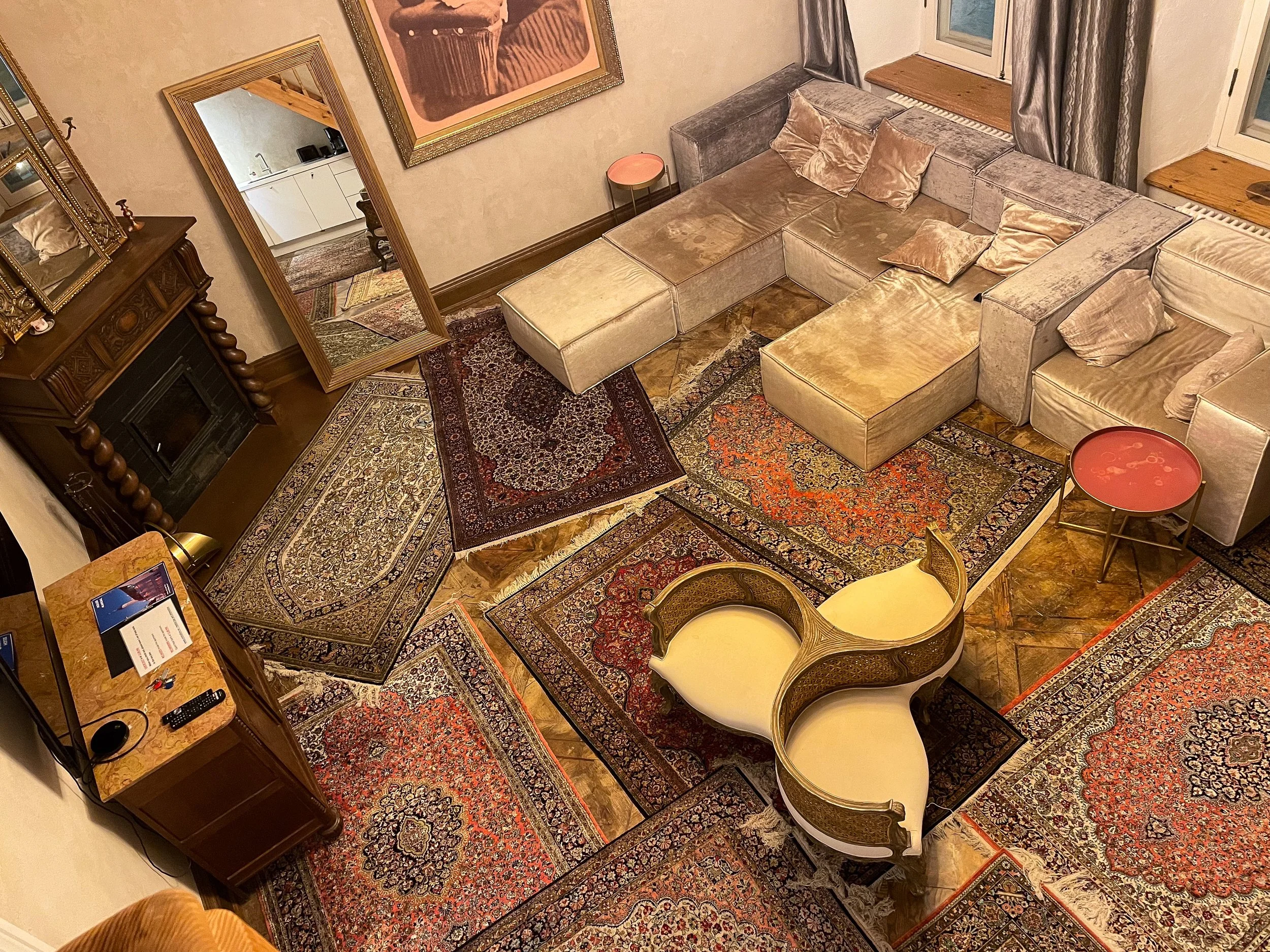 Merchant House. There are numerous unique stays in Vanalinn including former merchant houses, renovated defensive tower and inns. We stayed in a possibly haunted merchant house available on Airbnb with a working fireplace, tall ceilings and intricate wood floor overlaid with antique rugs.