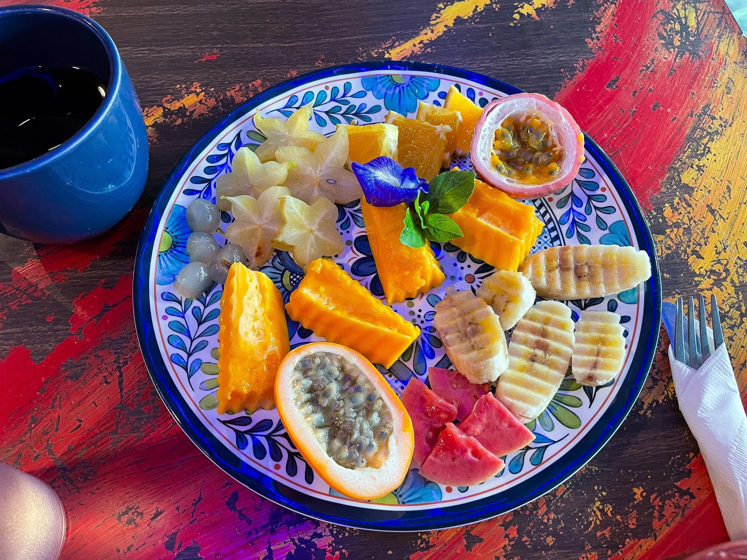 Pele's Kitchen. A heath foods cafe with a colorful painted interior, tropical fruit platters, pancakes, omelettes & vegan dishes. Come here for breakfast.