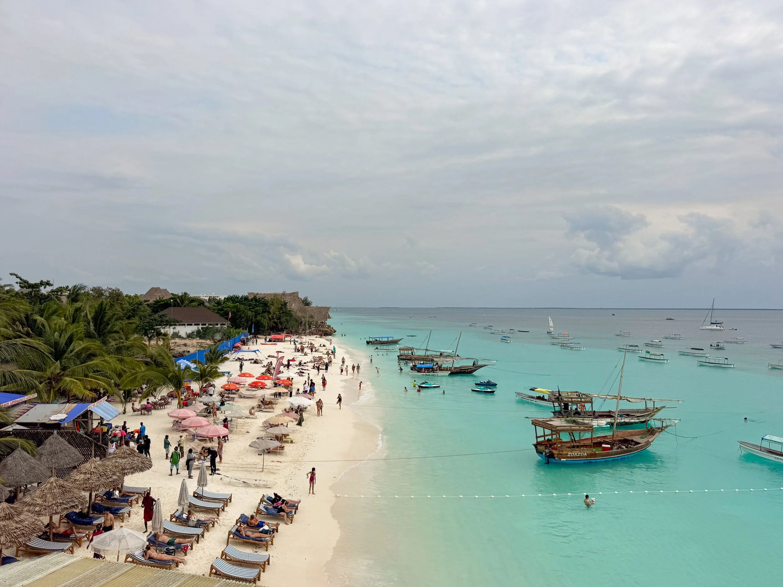 Nungwi Beach. One of Zanzibar’s largest and most commercial beaches. Its white sand shore is lined with swimming areas, resorts, restaurants, souvenir shops and tour operators. The coast wraps around the island’s northern point making it perfect for long walks on the beach.