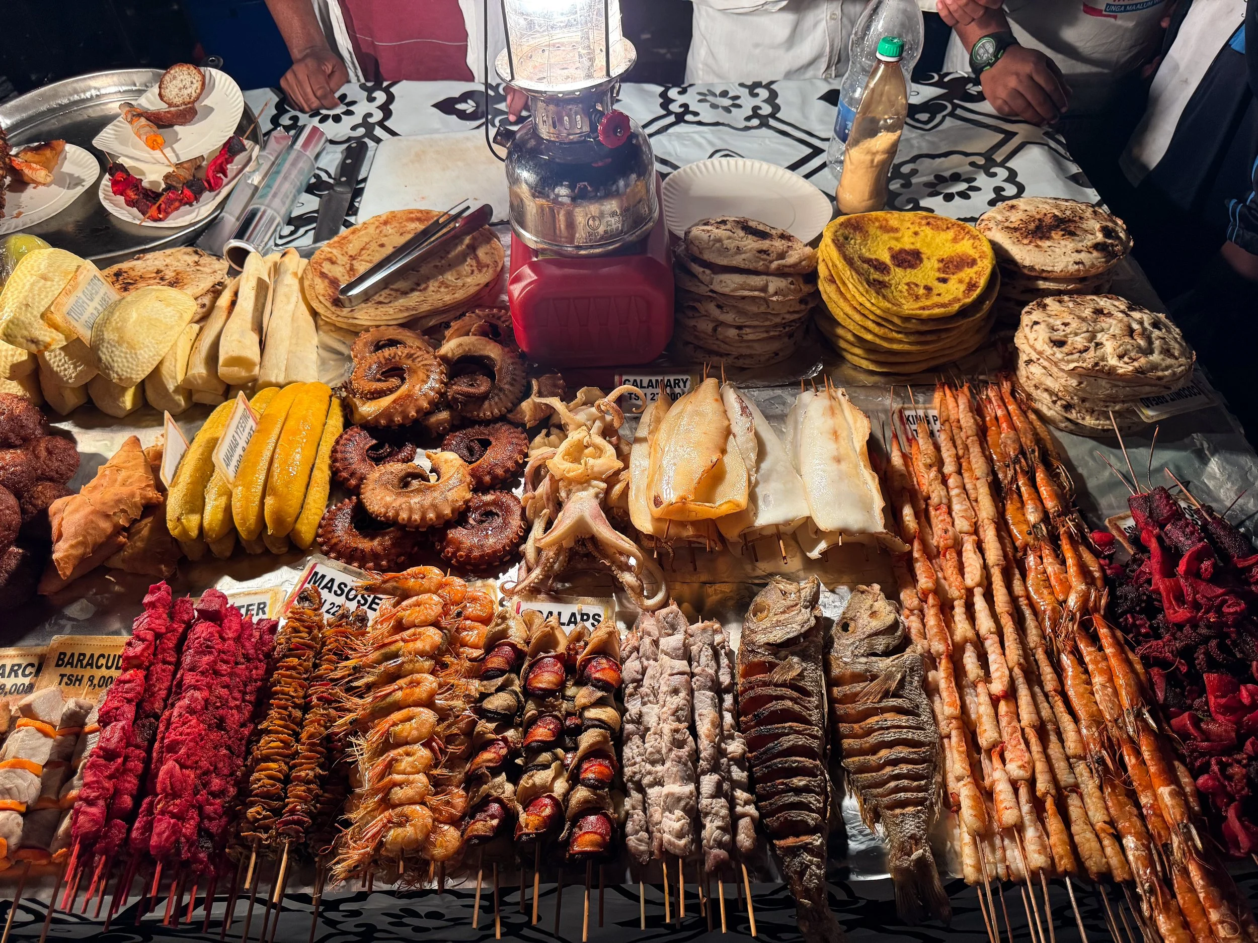 Forodhani Night Food Market. A nightly food market held in Forodhani Park. Charismatic chefs lure in customers with their persistence and genuinely tasty street food. Tables are covered in skewers of meat, seafood, starchy vegetables and flatbreads, all cooked over charcoal grills. Some chefs prepare local specialties like Urogo and Zanzibar Pizza. Juice vendors press sugarcane and ginger into a sweet blend. Shawarma carts broil and shave vertical rotisseries of meat. We came here for dinner two nights, filling up on a variety of street food.